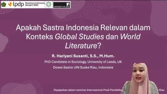 Sesi seminar dimoderatori dengan baik oleh Dr. Afdhal Kusumanegara, M.Pd. selaku dosen Pendidikan Bahasa Indonesia UIN Sultan Syarif Kasim Riau, yang memandu diskusi secara interaktif dan ilmiah, serta mampu menjembatani pandangan lintas negara menjadi satu ruang dialog yang inspiratif.