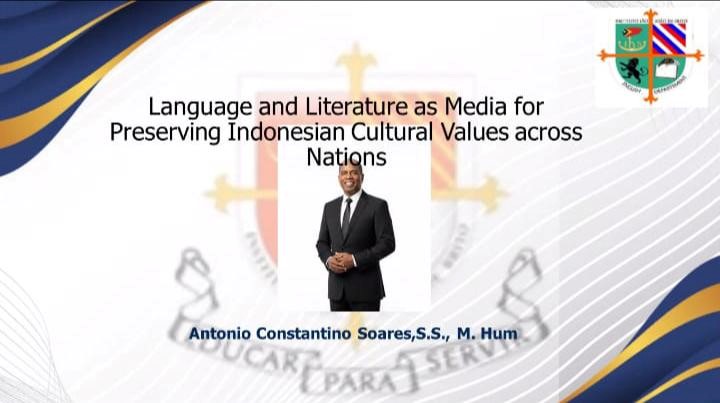 Menyampaikan materi bertajuk “Language and Literature as Media for Preserving Indonesian Cultural Values across Nations.” Dalam presentasinya, beliau menyoroti pentingnya bahasa dan sastra sebagai media pelestarian nilai-nilai budaya Indonesia di tengah arus globalisasi. Ia mencontohkan bagaimana bahasa Indonesia di Timor-Leste tetap menjadi jembatan persaudaraan dan simbol kebersamaan antarbangsa.