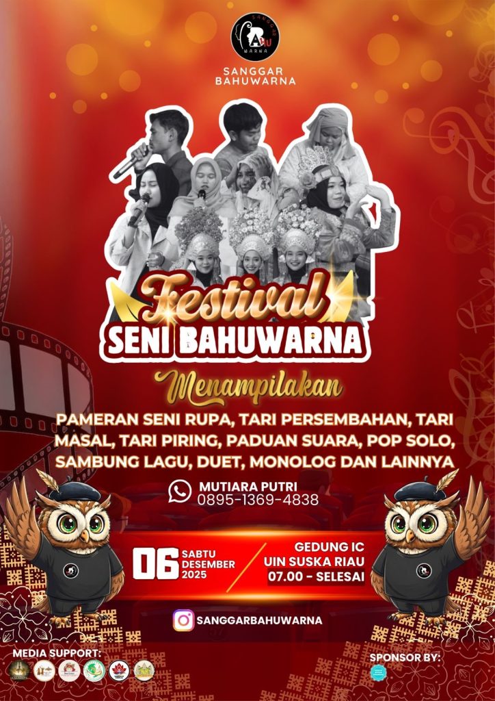 Pekanbaru — Sanggar Bahuwarna menyelenggarakan kegiatan seni dan budaya bertajuk FESSEN II 2025 (Festival Seni Sanggar) pada 5–6 Desember 2025 di lingkungan UIN Sultan Syarif Kasim Riau. Kegiatan ini menjadi wadah ekspresi seni, apresiasi budaya, sekaligus momentum penting bagi keberlanjutan organisasi Sanggar Bahuwarna.